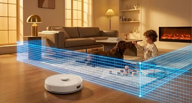 This robot features a LiDAR + dToF navigation system. It uses advanced sensors for navigation and does not require a camera, ensuring greater privacy and home security.